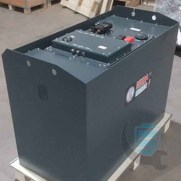 Габариты 975 × 460 × 780 мм рассчитаны на установку в батарейные отсеки соответствующего класса техники. Корпус выполнен в промышленном исполнении, что обеспечивает устойчивость к вибрациям и ежедневной эксплуатации в складской среде.
